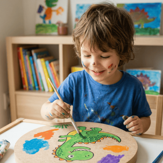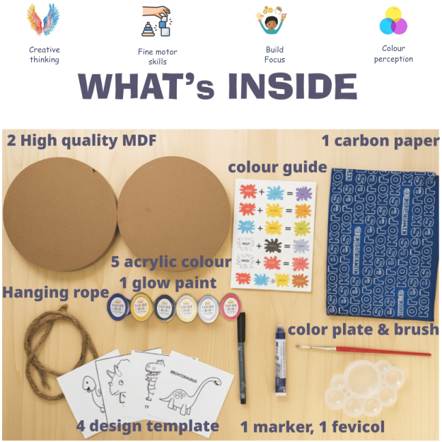 Glow in the dark DINO fun painting kit develops artistic skills, colour theory understanding, and fine motor control through engaging dinosaur painting activities, perfect for ages 6 and above. This kit offers a fun, mindful, and creative activity perfect for gifting, family bonding, or personal art projects.