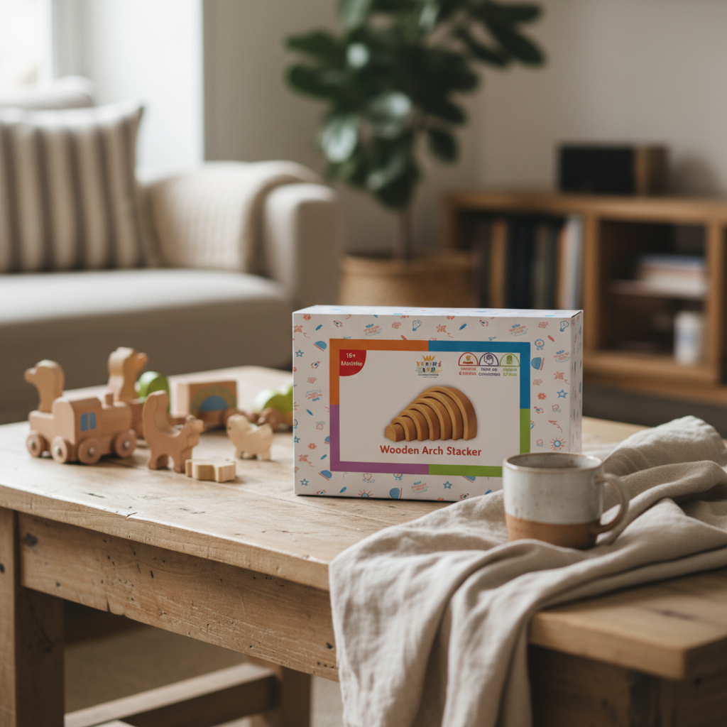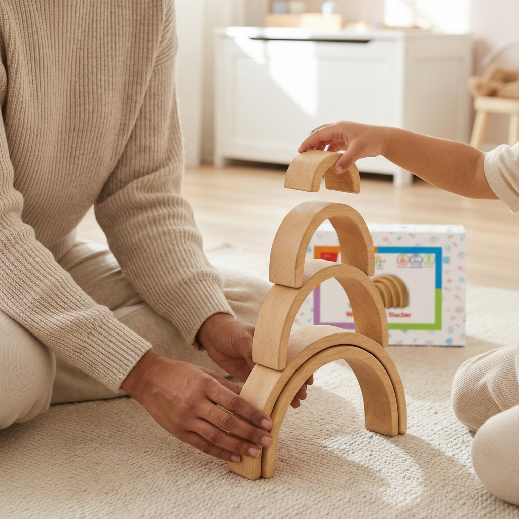 Discover endless possibilities with the Wooden Rainbow Arch Stacker set. This Montessori-inspired versatile toy is designed to ignite creativity and cognitive skills in children. Crafted from sustainable wood, it encourages open-ended play, stacking, and colour exploration. Perfect for fostering imagination and motor skills, it's a timeless addition to any playroom.